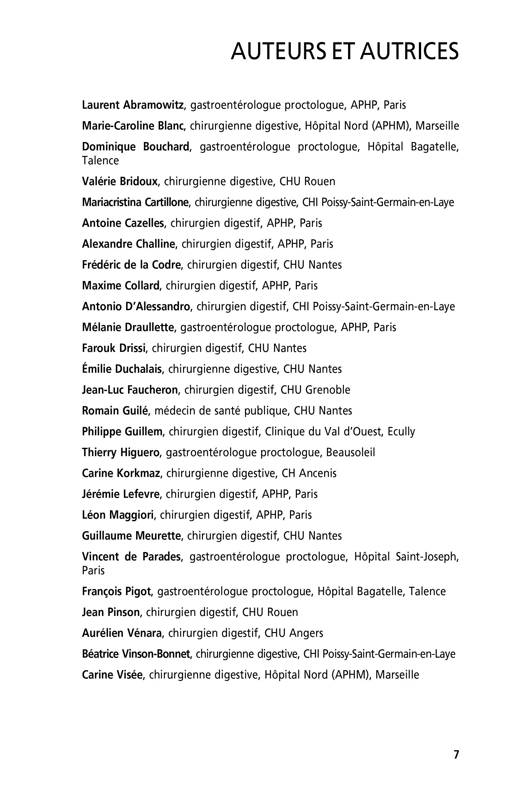 > L’Association Française de Chirurgie organise chaque année le congrès qui réunit l’ensemble des praticiens du domaine. Cette collection publie pour l’occasion deux monographies suivant les thématiques proposées par le congrès. Ces ouvrages proposent ainsi une somme d'informations actualisée sur des sujets les plus variés et les plus fédérateurs. La chirurgie proctologique a beaucoup évolué au cours des 20 dernières années. Souvent associée à une chirurgie de confort et fonctionnelle, elle incarne aussi dans certains cas une chirurgie d’urgence et vitale. L’avènement de la chirurgie ambulatoire a profondément modifié les algorithmes de prise en charge et la gestion périopératoire des patient·es. Dans cet ouvrage dédié aux clinicien·nes qui souhaitent prendre connaissance des progrès récents et des mutations de la chirurgie proctologique, nous avons passé en revue les affections proctologiques courantes de façon didactique pour dégager les progrès récents de la littérature. Dans une seconde partie, nous avons effectué une analyse des données fournies par le PMSI concernant deux actes traceurs courants : la chirurgie hémorroïdaire et la chirurgie des fistules et abcès en dressant une photographie exhaustive et actuelle de la morbi-mortalité de cette chirurgie en France au cours des années 2018-2019.