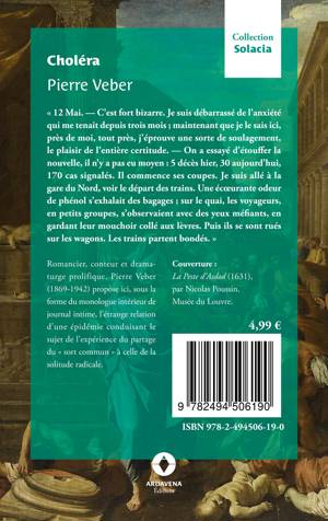 "12 mai - C'est fort bizarre. Je suis débarrassé de l'anxiété qui me tenait depuis trois mois ; maintenant que je le sais ici, près de moi, tout près, j'éprouve une sorte de soulagement, le plaisir de l'entière certitude. - On a essayé d'étouffer la nouvelle, il n'y a pas eu moyen : 5 décès hier, 30 aujourd'hui, 70 cas signalés. Il commence ses coupes. Je suis allé à la gare du Nord, voir le départ des trains. Une écoeurante odeur de phénol s'exhalait des bagages ; sur le quai, les voyageurs, en petits groupes, s'observaient avec des yeux méfiants, en gardant leur mouchoir collé aux lèvres. Puis ils se sont rués sur les wagons. Les trains partent bondés."