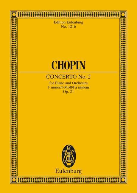 (Schott). Chopin's Piano Concertos have often been criticized for their orchestration. In the past this has frequently led to changes or complete re-workings of the instrumentation. But on closer examination Chopin's own versions contain many sophisticated and subtle orchestral effects, especially in the F minor Concerto. This is the first printed edition of an authentic version based on a partly autograph source and dateable to the summer of 1835. It is supplemented by a detailed editorial report with further information for the scholarly user. Preface * Transmission and Publication * Assessment of the sources * Editorial Notes * Editorial principles * Individual Notes * Readings in Schlesinger's edition for piano solo * I. Maestoso * II. Larghetto * III. Allegro vivace