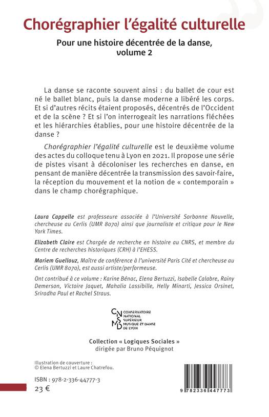 La danse se raconte souvent ainsi : du ballet de cour est né le ballet blanc, puis la danse moderne a libéré les corps. Et si d’autres récits étaient proposés, décentrés de l’Occident et de la scène ? Et si l’on interrogeait les narrations fléchées et les hiérarchies établies, pour une histoire décentrée de la danse ? Chorégraphier l’égalité culturelle est le deuxième volume des actes du colloque tenu à Lyon en 2021. Il propose une série de pistes visant à décoloniser les recherches en danse, en pensant de manière décentrée la transmission des savoir-faire, la réception du mouvement et la notion de « contemporain » dans le champ chorégraphique.