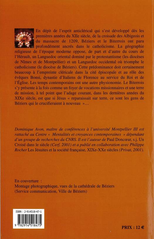 En dépit de l'esprit anticlérical qui s'est développé dès les premières années du XIIe siècle, de la croisade des Albigeois et du massacre de 1209, Béziers et le Biterrois ont paru profondément ancrés dans le catholicisme.