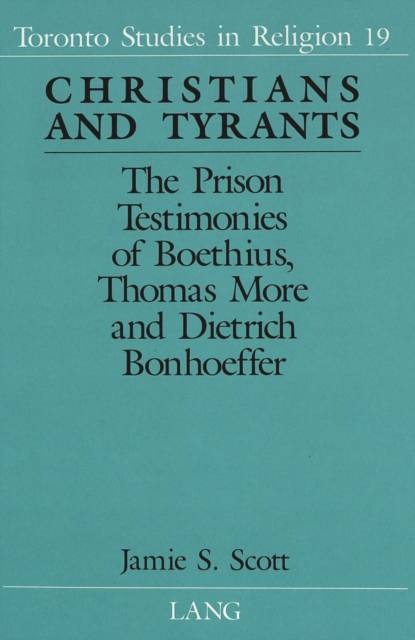 Conflict between religion and politics often results in a paradigm shift in cultural history. In turn, such paradigm shifts in the history of religion invariably produce martyrs. As Christianity moves from the classical to the medieval world, from the medieval to the modern, and from the modern to the postmodern, Boethius, Thomas More, and Dietrich Bonhoeffer find themselves caught amidst competing claims upon their religious and political allegiances. Imprisoned and executed by the tyrants Theodoric, Henry VIII, and Adolf Hitler, these figures explore their religious and political marginalization in the prison writings, The Consolation of Philosophy, A Dialogue of Comfort against Tribulation, and Letters and Papers from Prison. Using a variety of disciplinary methods, this study sheds new light on our understanding of martyrdom and the theory and practice of Christian testimony as both a literal act of self-sacrifice and a literary act of self-justification.