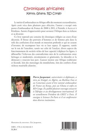 Après avoir vécu dans plusieurs pays africains, l'auteur a occupé trois postes d'ambassadeur de France de 2000 à 2011, à Nairobi, à Accra et à Kinshasa. Autant d'opportunités pour savourer l'Afrique dans sa richesse et sa diversité. Ce livre reprend une centaine de chroniques rédigées au cours d'une décennie. L'auteur montre une Afrique exubérante et féconde, loin des mensonges du mondialisme, loin des conforts d'une richesse matérielle aléatoire.