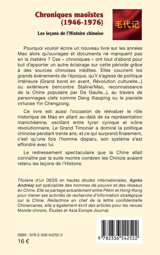Pourquoi vouloir écrire un nouveau livre sur les années Mao alors qu'ouvrages et documents ne manquent pas en la matière ? Ces chroniques ont tout d'abord pour but d'apporter un autre éclairage sur cette période grâce à des sources chinoises inédites. Elles couvrent les grands événements de l'époque, qu'il s'agisse de politique intérieure (Grand bond en avant, Révolution culturelle...) ou extérieure (rencontre Staline/Mao, reconnaissance de la Chine populaire par De Gaulle...), au travers de personnages clefs comme Deng Xiaoping ou le pianiste virtuose Yin Chengzong. Ce livre est aussi l'occasion de réévaluer le rôle historique de Mao en allant au-delà de sa représentation manichéenne, oscillant entre tyran cynique et icône révolutionnaire. Le Grand Timonier a dominé la politique chinoise pendant trente ans, et ce qui surprend finalement, c'est qu'une fois l'homme disparu, son système s'est effondré avec lui. Le redressement spectaculaire que la Chine allait connaître par la suite montre combien les Chinois avaient retenu les leçons de l'Histoire.