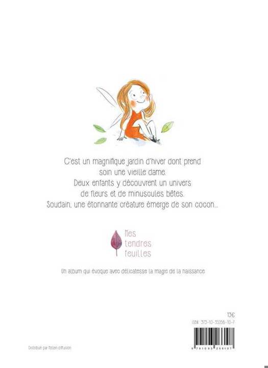 C'est un magnifique jardin d'hiver dont prend soin une gentille vieille dame. Deux enfants y découvrent plein de fleurs et de minuscules bêtes. Mais qui émerge de son cocon ? On dirait une petite fée, comme celle qui se cache dans le ventre de leur maman. Va-t-elle réussir son envol ? Un album qui dessine une tendre métaphore sur la magie de la naissance.
