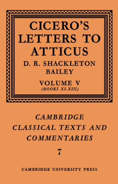 The fifth and sixth volumes of Dr Shackleton Bailey's edition of the Atticus letters contain a revised version of the text first published in the Oxford Classical Texts in 1961. Problems of dating in this part of the correspondence are severe, and prolonged study of them has caused Dr Shackleton Bailey to depart on occasions from the traditional chronology. Like their predecessors, these two volumes contain a text and selective apparatus, a translation facing each page of text, a full commentary, and indexes.