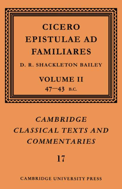 Professor Shackleton Bailey's edition of Cicero's letters to Atticus, also published in the Cambridge Classical Texts and Commentaries series, has been generally recognized as an outstanding achievement. Now Professor Shackleton Bailey presents his edition of the second major body of Cicero's correspondence - his letters to his friends. Unlike the Atticus volumes this edition contains no translation (this will be published elsewhere), which has made it possible to gather all the letters and commentary into only two volumes. The introduction, which includes a reassessment of the manuscript tradition, is followed by a completely revised text and apparatus criticus. The commentary covers many problems of text, interpretation, history, prosopography, and letter-chronology. Both volumes contain indexes. This edition is intended for use by students and specialists in Roman literature and history.