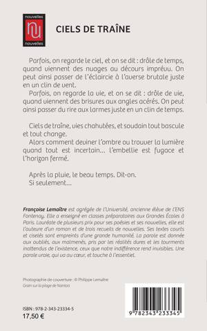 Parfois, on regarde le ciel, et on se dit: drôle de temps, quand viennent des nuages au décours imprévu. On peut ainsi passer de l'éclaircie à l'averse brutale juste en un clin de vent. Parfois, on regarde la vie, et on se dit: drôle de vie, quand viennent des brisures aux angles acérés. On peut ainsi passer du rire aux larmes juste en un clin de temps. Ciels de traîne, vies chahutées, et soudain tout bascule et tout change. Alors comment deviner l'ombre ou trouver la lumière quand tout est incertain... l'embellie est fugace et l'horizon fermé. Après la pluie, le beau temps. Dit-on. Si seulement...