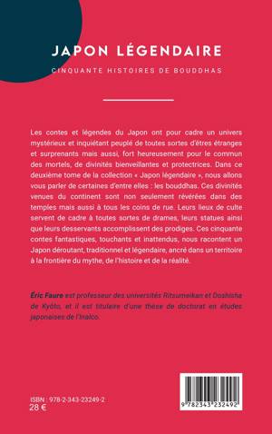 Les contes et légendes du Japon ont pour cadre un univers mystérieux et inquiétant peuplé de toutes sortes d’êtres étranges et surprenants mais aussi, fort heureusement pour le commun des mortels, de divinités bienveillantes et protectrices. Dans ce deuxième tome de la collection « Japon légendaire », nous allons vous parler de certaines d’entre elles : les bouddhas. Ces divinités venues du continent sont non seulement révérées dans des temples mais aussi à tous les coins de rue. Leurs lieux de culte servent de cadre à toutes sortes de drames, leurs statues ainsi que leurs desservants accomplissent des prodiges. Ces cinquante contes fantastiques, touchants et inattendus, nous racontent un Japon déroutant, traditionnel et légendaire, ancré dans un territoire à la frontière du mythe, de l’histoire et de la réalité.