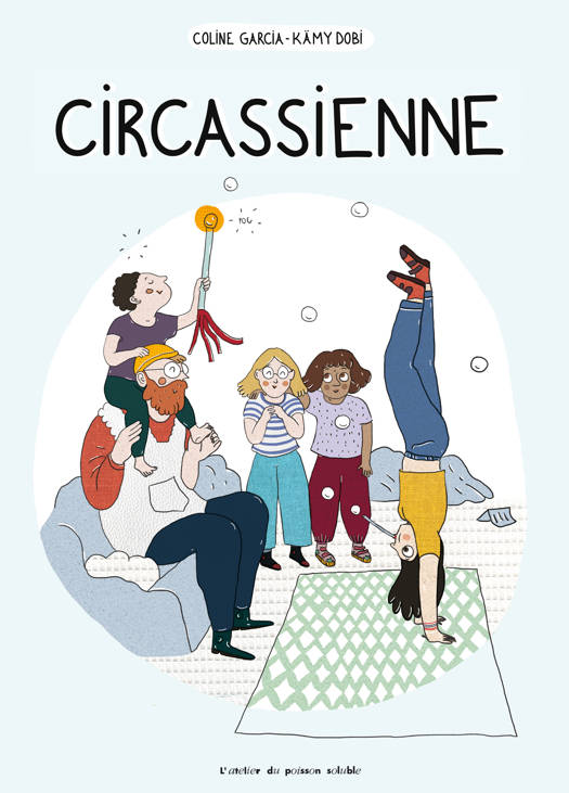 À travers la curiosité d’un enfant, Coline Garcia, artiste de la compagnie de cirque contemporain SCoM, propose de découvrir des métiers mal connus. La sortie scolaire au théâtre pour assister au spectacle dans lequel la mère de Charlie réalise un numéro de corde lisse, permet d’évacuer tous les clichés d’une vision traditionnelle du cirque et de donner à voir un aperçu des créations contemporaines. De la même façon, les illustrations de Kämy Dobi rompent radicalement avec le « folklore » et accompagnent cette découverte des nouvelles esthétiques, loin des paillettes.