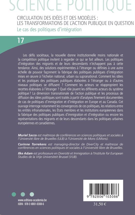Les défis sociétaux, les nouvelles réalités institutionnelles ou la compétition politique poussent à se référer à ce qui se fait ailleurs. Des politiques expérimentées dans un autre contexte national ou définies à une autre échelle de pouvoir interviennent dans la fabrique des politiques publiques d'intégration d'immigration. Cet ouvrage s'intéresse à la façon dont la diffusion des idées, des instruments et des pratiques s'organise dans le domaine des politiques d'immigration et d'intégration.