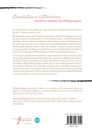Etudes des circulations intellectuelles sous l'Occupation allemande dans le domaine de la traduction. Les contributeurs abordent les représentations du théâtre allemand à Paris, l'influence du romantisme en Belgique, la traduction de bandes dessinées sous le régime de Vichy, ainsi que le rôle des périodiques culturels idéologiquement orientés durant cette période.