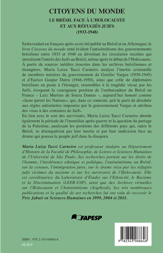 Enfin traduit en français après avoir été publié au Brésil et en Allemagne, cet ouvrage rend évident l'antisémitisme des gouvernements brésiliens entre 1933 et 1948 en dévoilant les circulaires secrètes qui interdirent l'entrée des Juifs au Brésil, même après le début de l'Holocauste. À partir de sources inédites, l'auteur analyse l'inertie criminelle de membres notoires du gouvernement de Getulio Vargas et d'Eurico Gaspar Dutra. Il évoque aussi la courageuse position de l'ambassadeur du Brésil en France qui prit le parti de désobéir aux règles antisémites et attribua des visas à des centaines de Juifs.