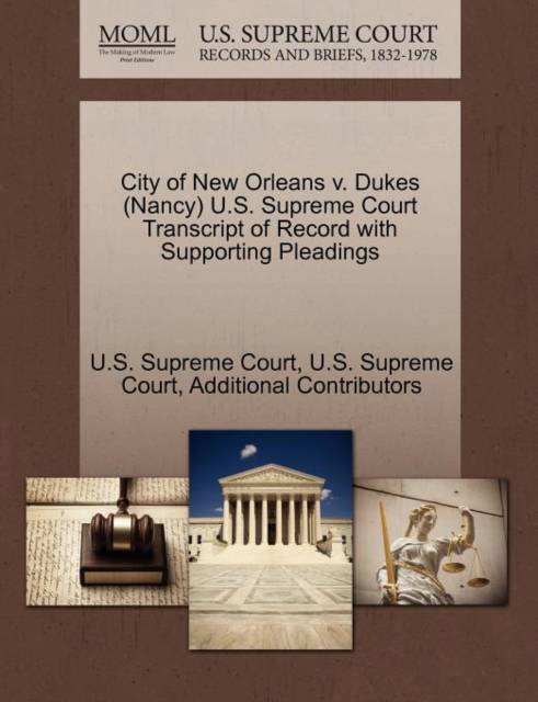 The Making of Modern Law: U.S. Supreme Court Records and Briefs, 1832-1978 contains the world's most comprehensive collection of records and briefs brought before the nation's highest court by leading legal practitioners - many who later became judges and associates of the court. It includes transcripts, applications for review, motions, petitions, supplements and other official papers of the most-studied and talked-about cases, including many that resulted in landmark decisions. This collection serves the needs of students and researchers in American legal history, politics, society and government, as well as practicing attorneys. This book contains copies of all known US Supreme Court filings related to this case including any transcripts of record, briefs, petitions, motions, jurisdictional statements, and memorandum filed. This book does not contain the Court's opinion. The below data was compiled from various identification fields in the bibliographic record of this title. This data is provided as an additional tool in helping ensure edition identification: City of New Orleans v. Dukes (Nancy)Appendix / U.S. Supreme Court / 1974 / 74-775 / 421 U.S. 908 / 95 S.Ct. 1556 / 43 L.Ed.2d 773 / 6-30-1975City of New Orleans v. Dukes (Nancy)Appendix / U.S. Supreme Court / 1974 / 74-775 / 421 U.S. 908 / 95 S.Ct. 1556 / 43 L.Ed.2d 773 / 6-30-1975City of New Orleans v. Dukes (Nancy)Appellant's Brief / JOEL P LOEFFELHOLZ / 1974 / 74-775 / 421 U.S. 908 / 95 S.Ct. 1556 / 43 L.Ed.2d 773 / 6-30-1975City of New Orleans v. Dukes (Nancy)Appellee's Brief / JOSEPH NEVES MARCAL / 1974 / 74-775 / 421 U.S. 908 / 95 S.Ct. 1556 / 43 L.Ed.2d 773 / 8-14-1975City of New Orleans v. Dukes (Nancy)Jurisdictional Statement / Joel P Loeffelholz / 1974 / 74-775 / 421 U.S. 908 / 95 S.Ct. 1556 / 43 L.Ed.2d 773 / 12-21-1974