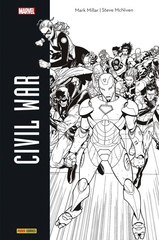 La saga culte vendue à plusieurs centaines de milliers d'exemplaires en France, revient dans une nouvelle édition prestigieuse quelques semaines avant la sortie du nouveau film Avengers, qui réunira tous les héros. Civil War est l'affrontement fratricide entre deux camps de héros : ceux qui ont accepté de se faire enregistrer auprès du gouvernement sous l'égide d'Iron Man, et ceux, devenus hors-la-loi, qui ont refusé et qui se battent aux côtés de Captain America. Retrouvez la saga culte dans une édition très grand format, en noir & blanc pour apprécier la toute-puissance du trait de Steve McNiven.