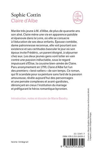 Paru anonymement en 1799, Claire d’Albe fut l’un des premiers « best-sellers » de son temps. Ce roman, qui fit scandale pour sa peinture sans fard de la passion amoureuse, révèle aujourd’hui des personnages et une pensée complexes et avant-gardistes, dénonçant en creux l’institution du mariage et préfigurant le héros romantique byronien.