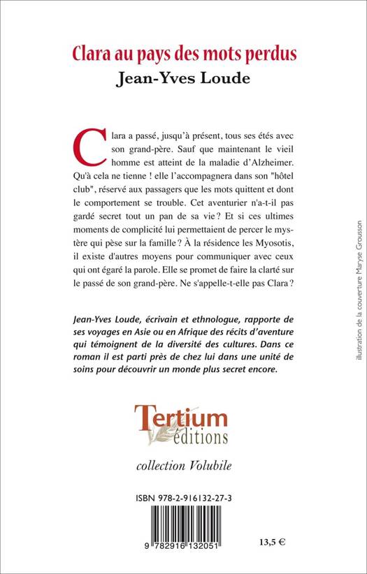 Clara, pendant un été, accompagnera son grand-père atteint de la maladie d'Alzheimer, dans une institution spécialisée. Cet aventurier n'a-t-il pas gardé secret tout un pan de sa vie ? Et si ces ultimes moments de complicité lui permettaient de percer le mystère qui pèse sur la famille ? À la résidence les Myosotis, il existe d'autres moyens pour communiquer avec ceux qui ont égaré la parole. Elle se promet de faire la clarté sur le passé de son aventurier de grand-père. Ne s'appelle-t-elle pas Clara ?
