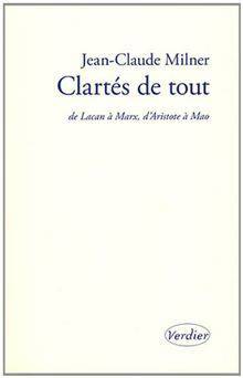 Dans Clartés de tout, Fabian Fajnwaks et Juan Pablo Lucchelli, deux psychanalystes, interrogent Jean-Claude Milner sur son parcours et sur la place que Jacques Lacan y a tenue.En répondant à leurs questions, Jean-Claude Milner a été amené à réexaminer ses propres positions sur la linguistique et sur la science moderne, sur sa théorie des noms et en particulier du nom juif, sur la transformation des relations entre capitalisme et bourgeoisie, sur la Révolution et sur la politique.Il est apparu que le nom de Lacan était mentionné à chaque étape. Jean-Claude Milner a eu ainsi l'occasion de mieux préciser sa dette: Lacan, selon lui, doit fonctionner comme un opérateur de clarté, non d'obscurité.Le projet de livre surgit en cours de route. Pour qu'il soit mené à bien, les questions et les réponses devaient être ajustées et ajointées. Clartés de tout est le résultat de ce travail.
