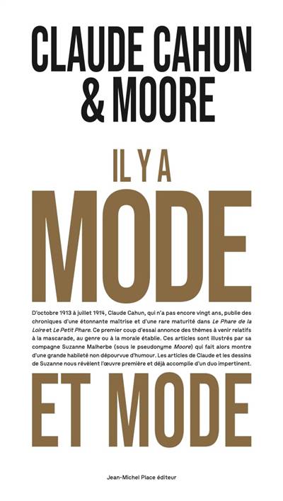 D’octobre 1913 à juillet 1914, Claude Cahun, qui n’a pas encore vingt ans, publie des chroniques d’une étonnante maîtrise et d’une rare maturité dans Le Phare de la Loire et Le Petit Phare. Ce premier coup d’essai dans la presse nantaise annonce des thèmes à venir relatifs à la mascarade, au genre ou à la natalité. Ces articles sont tous illustrés par sa compagne Suzanne Malherbe (sous le pseudonyme Moore) qui fait alors montre dans ses dessins d’une grande rigueur non dépourvue d’humour. Reproduits en fac-similé, les articles de Claude et les dessins de Suzanne nous révèlent l’œuvre première et déjà accomplie d’un duo virevoltant.