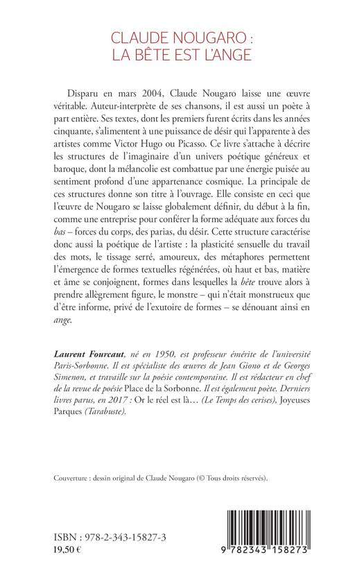 Auteur-interprète, Claude Nougaro est aussi un poète à part entière. Ses textes s'alimentent à une puissance de désir qui l'apparente à des artistes comme Victor Hugo ou Picasso. Ce livre s'attache à décrire les structures de l'imaginaire d'un univers poétique généreux et baroque. L'oeuvre de Nougaro se laisse définir comme une entreprise pour conférer la forme adéquate aux forces du bas – forces du corps, des parias, du désir. Cette structure caractérise donc aussi la poétique de l'artiste : la plasticité sensuelle du travail des mots, le tissage serré, amoureux, des métaphores permettant l'émergence de formes textuelles régénérées.