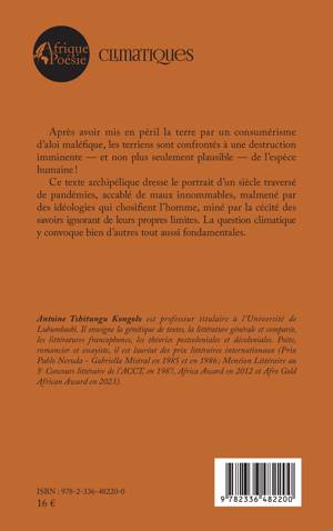 Après avoir mis en péril la terre par un consumérisme d'aloi maléfique, les terriens sont confrontés à une destruction imminente - et non plus seulement plausible - de l'espèce humaine ! Ce texte archipélique dresse le portrait d'un siècle traversé de pandémies, accablé de maux innommables, malmené par des idéologies qui chosifient l'homme, miné par la cécité des savoirs ignorant de leurs propres limites. La question climatique y convoque bien d'autres tout aussi fondamentales.