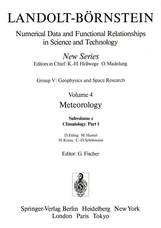Meteorology was first considered in Landolt-Börnstein in Volume III (published 1952) of the 6th Edition. At that time, nine contributions with 153 pages seemed enough. In the meantime, meteorology has experienced a worldwide boom owing to the growing interest in environmental problems. New observation and evaluation methods together with high performance computers have produced an ever increasing amount of data on the atmosphere, which are being exploited for weather and climate problems in various ways. In addition to the improved knowledge gained directly by these observations they are indispensable in the verification of the diagnosed and predicted atmospheric states obtained by mathematically based weather forecasting and climate models. Volume V/4 of the New Series covers the field of meteorology as the physics of the atmosphere in several subvolumes. The first, V/4 a "Thermodynamical and dynamical structures of the global atmosphere", appeared in 1986. It was followed by subvolume V/4 b dealing with the physical and chemical data of the atmosphere. Subvolume V/4 c is concerned with the physical and meteorological aspects of climate. The first part, V/4 c 1, presented here, contains contributions on climate definition, specific surfaces climates, climate variations, and the planetary boundary layer. The second part, V/4 c 2, will treat the present global surface climate and the mathematical and physical concepts of climate modelling.