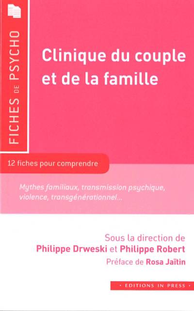 Comment penser le couple et la famille aujourd'hui ? Thérapie familiale, thérapie de couple… un livre qui fait le point en 12 fiches. Le couple et la famille ne cessent de se transformer depuis quelques décennies, dans nos sociétés contemporaines. Les demandes se modifient, et les dispositifs de prise en charge se sont considérablement développés. Comment penser le couple dans la famille aujourd'hui ? Comment se construisent les mythes familiaux ? Qu'est-ce que la transmission psychique ? Quelle place prend la culture dans le groupe familial ? Comment construire un dispositif de thérapie familiale ? En 12 fiches, cet ouvrage fait le point sur les dispositifs de prise en charge. Transmission trans-générationnelle, le porte symptôme familial, le handicap, la violence dans la famille… sont tour à tour abordés. Chacune des douze fiches est illustrée par un cas clinique, un tableau récapitulatif, ou encore un QCM. Cet ouvrage didactique et pratique est destiné aux étudiants ainsi qu'aux professionnels qui s'intéressent à l'utilisation croissante de dispositifs de prise en charge du couple et de la famille.