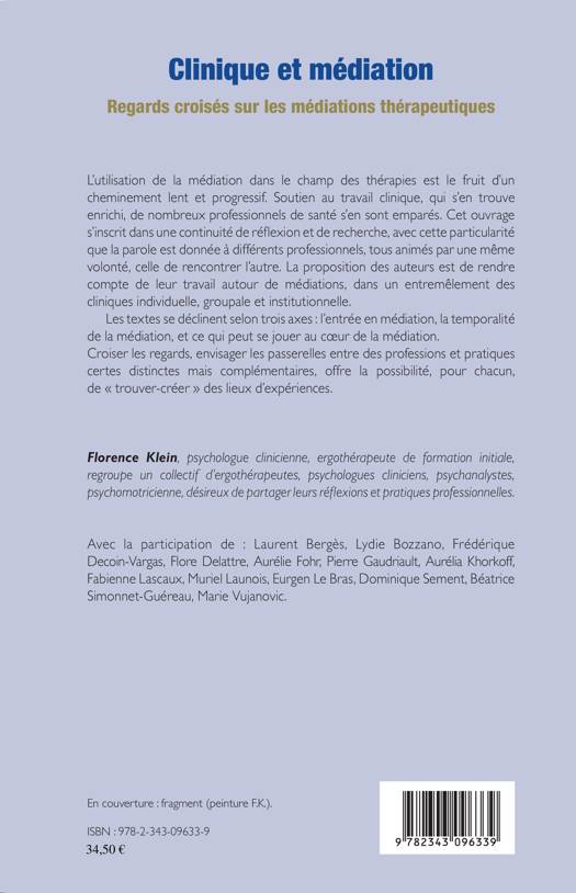 La médiation, soutien au travail clinique, s'étend auprès de nombreux professionnels de santé, animés par une même volonté, celle de la rencontre de l'autre. Ces contributions rendent compte du travail de médiation dans un entremêlement des cliniques individuelle, groupale et institutionnelle.