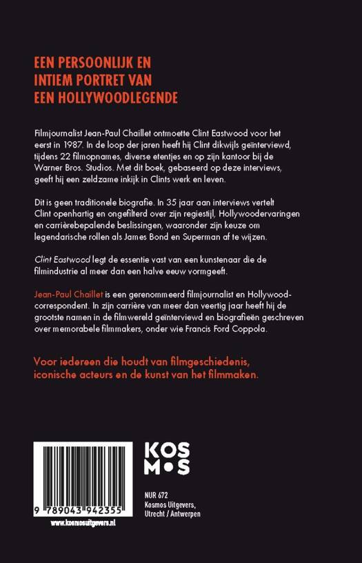 Clint Eastwood van Jean-Paul Chaillet biedt je een intieme blik achter de schermen bij vijfvoudig Academy Award-winnaar Clint Eastwood, een van Hollywoods grootste iconen. Jean-Paul Chaillet bouwde in 35 jaar een unieke band op met Clint Eastwood, waardoor Eastwood een zeldzame inkijk geeft in zijn werk en leven. Hij vertelt openhartig over zijn regiestijl, Hollywood-ervaringen en carrièrebepalende beslissingen, waaronder zijn keuze om legendarische rollen als James Bond en Superman af te wijzen. Dit boek legt de essentie vast van een kunstenaar die de filmindustrie al meer dan een halve eeuw vormgeeft.