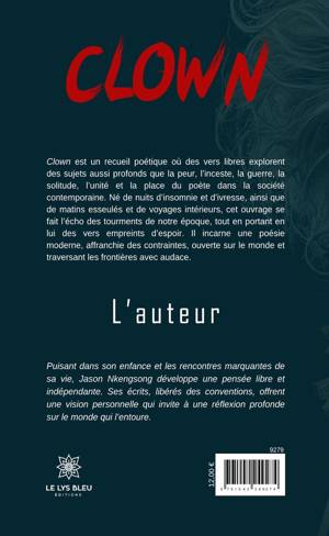 Clown est un recueil poétique où des vers libres explorent des sujets aussi profonds que la peur, l'inceste, la guerre, la solitude, l'unité et la place du poète dans la société contemporaine. Né de nuits d'insomnie et d'ivresse, ainsi que de matins esseulés et de voyages intérieurs, cet ouvrage se fait l'écho des tourments de notre époque, tout en portant en lui des vers empreints d'espoir. Il incarne une poésie moderne, affranchie des contraintes, ouverte sur le monde et traversant les frontières avec audace.