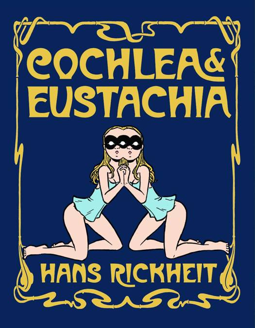 Cochlea & Eustachia appear to be twin human girls, but this has yet to be confirmed. Their actions seem to be motivated less by curiosity than boredom and an inclination towards purposeless destruction. Any connate objective remains to be determined. They never stray apart from each other, out of an unspoken proclivity. Perhaps they keep together because they resemble each other; a mixture of vanity and comfort is the foundation of their constant companionship. They seem to consider any creature with dissimilar features as inept or untrustworthy. They are suspected of giving hypnotic suggestions to cats. They do not seem particularly malicious, just meddlesome. This new graphic novel from the author of the acclaimed Squirrel Machine is lighter in tone than his previous works, yet its myriad charms remain as sinister as Rickheit fans would expect.