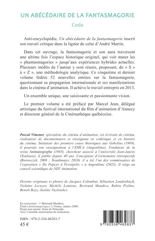 Anti-encyclopédie, Un abécédaire de la fantasmagorie inscrit son travail critique dans la lignée de celui d'André Martin. Dans cet ouvrage, la fantasmagorie et son aura traversent une ultime fois l'espace historique originel, qui voit muter les phantasmagories jusqu'aux expériences hybrides actuelles. Plusieurs inédits de l'auteur y sont réunis, proposant, de S à Z, une méthodologie analytique. Ce cinquième et dernier volume fédère 52 nouvelles entrées sur la fantasmagorie, questionnant sa propagation internationale et ses manifestations dans le cinéma d'animation. Il achève le travail entrepris en 2013. Un ensemble unique, une saisissante et passionnante vision. Le premier volume a été préfacé par Marcel Jean, délégué artistique du festival international du film d'animation d'Annecy et directeur général de la Cinémathèque québécoise.