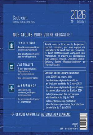 Expertise juridique incontournable des auteurs : Annoté sous la direction de Laurent Leveneur, professeur à l’université de Paris-Panthéon-Assas et directeur du laboratoire de droit civil, ce code est enrichi par de grands spécialistes.