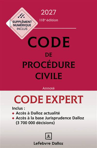 - exclusif au Code expert : 1 an d'accès sans engagement à Dalloz Actualité, le quotidien de référence d'actualité juridique, et au 3 700 000 décisions de la base Dalloz Jurisprudence.
