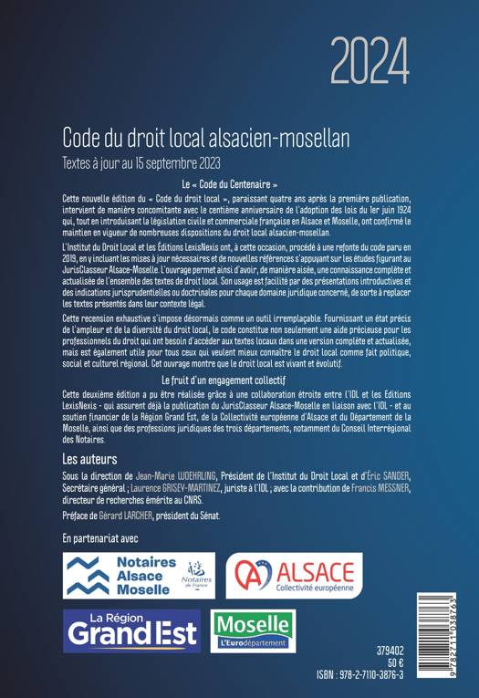 Introduction : règles générales d'application du droit local I - Droit privé * Associations et fondations * Questions immobilières * Organisations judiciaires et procédures locales * Professions juridiques * Droit civil (divers) II. - Droit économique• Artisanat• Droit commercial• Navigation sur le Rhin et en Moselle III. - Droit social• Aide sociale de droit local• Assurances sociales• Droit du travail IV. - Droit public• Chasse• Cultes• Contrôle des professions• Droit communal local• Enseignement• Droit administratif (divers)