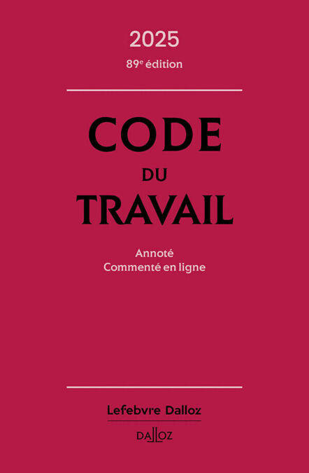 L'ensemble des textes applicables aux relations de travail.Les + de l'édition 2025 : - Nombreuses annotations de jurisprudence et références bibliographiques;- Appendice riche de nombreuses rubriques annotées en rapport avec le droit travail; - Supplément en ligne inclus. Le Code du travail Dalloz rassemble l'ensemble des textes applicables aux relations de travail et s'impose comme la référence aux acteurs du droit social. En plus des parties codifiées (L, R et D), il comprend un Appendice présentant de nombreuses rubriques annotées en rapport avec le droit travail, et notamment les textes relatifs à l'assurance chômage, les différents modèles de lettres de licenciement, l'accord national interprofessionnel relatif au partage de la valeur ou encore la directive de mai 2023 relative à la transparence des rémunérations. Le code est complété d'annotations de jurisprudence indispensables à l'application des textes, constamment enrichies, avec plus de 20 000 décisions citées. Et toujours une table alphabétique générale complète ; une table de renvois aux anciens articles pour la partie relative aux institutions représentatives du personnel (selon sa pertinence) et une table de renvois aux anciens articles pour la partie relative à la durée du travail (selon sa pertinence).Le Code du travail 2025 est notamment à jour : des importantes évolutions jurisprudentielles relatives à la preuve en matière prud'homale et aux droits à congés payés en cas de suspension du contrat ; de loi du 15 novembre 2024 visant à poursuivre l'expérimentation relative au travail à temps partagé aux fins d'employabilité; directive du 23 octobre 2024 relative à l'amélioration des conditions de travail dans le cadre du travail via une plateforme; de la loi du 22 avril 2024 portant diverses dispositions d'adaptation au droit de l'Union européenne (DDADUE) qui, notamment, modifie les règles en matière d'acquisition des congés payés en cas d'arrêt maladie d'un salarié.