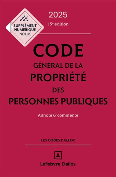 Quinzième édition du Code général de la propriété des personnes publiques annoté et commenté. Le code, issu de l'ordonnance du 21 avril 2006, complété par le décret n° 2011-1612 du 22 novembre 2011, a notamment connu plusieurs évolutions récentes liées à la volonté de mobiliser le foncier public pour faire face à la crise du logement.