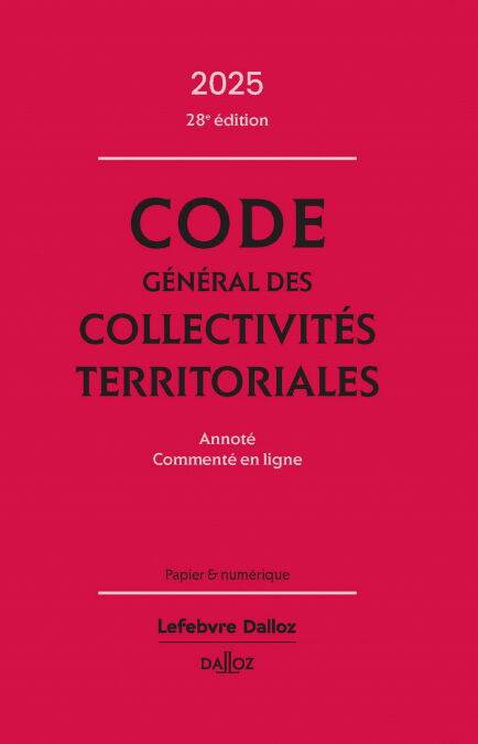 Les + de l'édition 2025: - Code commenté en ligne;- Une structure optimisée autour de 3 parties : législative, réglementaire, code des communes;- Une richesse exceptionnelle des annotations et de nombreux textes complémentaires; - inclus: le Code en ligne, enrichi, annoté et mis à jour en continu. Le Code général des collectivités territoriales Dalloz contient l'ensemble du droit applicable aux communes, aux départements, aux régions et à leurs groupements, permettant à leurs gestionnaires de trouver les réponses adaptées aux questions qui les préoccupent quotidiennement. La 28ème édition est marquée par une actualité législative importante. Enrichi d'annotations jurisprudentielles et bibliographiques élaborées par une équipe de spécialistes, ce millésime intègre notamment: Décret du 15 juillet 2024 portant sur le concours particulier de la dotation générale de décentralisation relatif aux bibliothèques ; Décret du 5 juillet 2024 relatif au tribunal et au contentieux du stationnement payant ; Décret du 26 avril 2024 portant diverses mesures relatives aux dotations de l'État aux collectivités territoriales et à la péréquation des ressources fiscales ; Loi du 9 avril 2024 visant à l'accélération et à la simplification de la rénovation de l'habitat dégradé et des grandes opérations d'aménagement ; Loi du 29 mars 2024 tendant à tenir compte de la capacité contributive des collectivités territoriales dans l'attribution des subventions et dotations destinées aux investissements relatifs à la transition écologique des bâtiments scolaires ; Loi du 21 mars 2024 renforçant la sécurité et la protection des maires et des élus locaux ; Loi du 30 décembre 2023 visant à revaloriser le métier de secrétaire de mairie ; Décret du 29 décembre 2023 modifiant les modalités de fonctionnement des conseils économiques, sociaux et environnementaux régionaux ; Loi du 23 octobre 2023 relative à l'industrie verte.