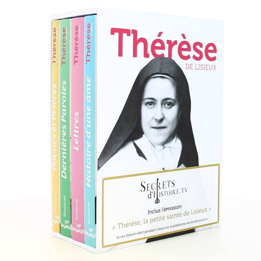 Pour le lancement de la notre nouvelle collection des œuvres de Thérèse de Lisieux, nous créons un coffret spécial qui contiendra Histoire d’une âme, Dernières Paroles, Poésies et Prières et les Lettres. Rassemblant ainsi les ouvrages principaux de la docteur de l’Église, il permettra aux amis de Thérèse et à ceux qui veulent la découvrir de se plonger dans son œuvre. Édition établie par Hélène Mongin avec l’aide des Archives du carmel de Lisieux.