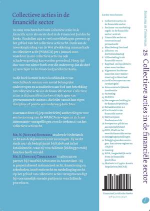 In 2009 verscheen het boek Collectieve acties in de financiële sector als eerste deel in de Financieel Juridische Reeks. Sindsdien zijn er veel ontwikkelingen geweest op het gebied van het collectieve actierecht. Denk aan de inwerkingtreding van de Wet afwikkeling massaschade in collectieve actie (WAMCA) per 1 januari 2020, waardoor in een collectieve actie nu ook schadevergoeding kan worden gevorderd. Hoog tijd dus voor een nieuw boek over dit onderwerp dat als deel 25 verschijnt in de Financieel Juridische Reeks.