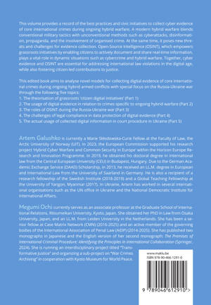 This volume provides a record of the best practices and civic initiatives to collect cyber evidence of core international crimes during ongoing hybrid warfare. A modern hybrid warfare blends conventional military tactics with unconventional methods such as cyberattacks, disinformation, propaganda, and the involvement of organised crime. At the same time, it poses new threats and challenges for evidence collection. Open-Source Intelligence (OSINT), which empowers grassroots initiatives by enabling citizens to actively document and share real-time information, plays a vital role in dynamic situations such as cybercrime and hybrid warfare. Together, cyber evidence and OSINT are essential for addressing international law violations in the digital age, while also fostering citizen-led contributions to justice.