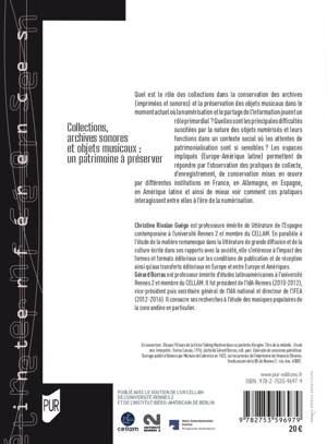 Quel est le rôle des collections dans la conservation des archives (imprimées et sonores) et la préservation des objets musicaux dans le moment actuel où la numérisation et le partage de l’information jouent un rôle primordial? Quelles sont les principales difficultés suscitées par la nature des objets numérisés et leurs fonctions dans un contexte social où les attentes de patrimonialisation sont si sensibles? Les espaces impliqués (Europe-Amérique latine) permettent de répondre par l’observation des pratiques de collecte, d’enregistrement, de conservation mises en oeuvre par différentes institutions en France, en Allemagne, en Espagne, en Amérique latine et ainsi de mieux voir comment ces pratiques interagissent entre elles à l’ère de la numérisation.