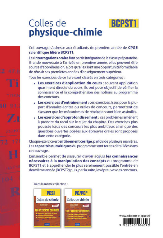 L’ensemble permet de s’assurer d’avoir acquis les connaissances nécessaires à la manipulation des concepts du programme de BCPST 1re année et à appréhender le plus sereinement possible les épreuves écrites et orales des concours.