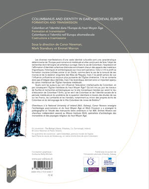 Les diverses manifestations d'une vaste identité culturelle sont une caractéristique déterminante de l'Europe post-romaine et médiévale et elles continuent de faire l'objet de recherches dont témoigne cet ambitieux ouvrage. Dans le cas de Colomban, l'expression et l'affirmation d'identités collectives distinctes enrichissent chacun des aspects des matériaux linguistiques, historiques et archéologiques qui nous sont parvenus. Celui-ci mit à profit sa formation insulaire (utilisée contre lui en Gaule, comme dans le cas de la tonsure de ses moines et de la datation singulière des fêtes de Pâques), mais il ne perdit jamais de vue l'influence unificatrice et toujours plus puissante de l'Église chrétienne. Il ne se contenta donc pas d'intégrer deux identités, mais il les revendiqua, donnant ainsi un important aperçu du canon intellectuel de l'Église irlandaise médiévale.