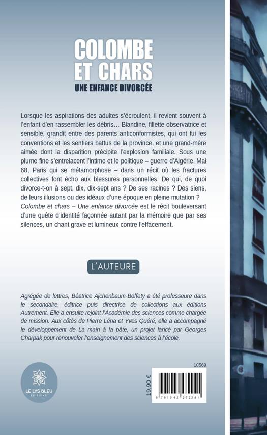 Lorsque les aspirations des adultes s'écroulent, il revient souvent à l'enfant d'en rassembler les débris... Blandine, fillette observatrice et sensible, grandit entre des parents anticonformistes, qui ont fui les conventions et les sentiers battus de la province, et une grand-mère aimée dont la disparition précipite l'explosion familiale. Sous une plume fine s'entrelacent l'intime et le politique - guerre d'Algérie, Mai 68, Paris qui se métamorphose - dans un récit où les fractures collectives font écho aux blessures personnelles. De qui, de quoi divorce-t-on à sept, dix, dix-sept ans ? De ses racines ? Des siens, de leurs illusions ou des idéaux d'une époque en pleine mutation ? Colombe et chars - Une enfance divorcée est le récit bouleversant d'une quête d'identité façonnée autant par la mémoire que par ses silences, un chant grave et lumineux contre l'effacement.