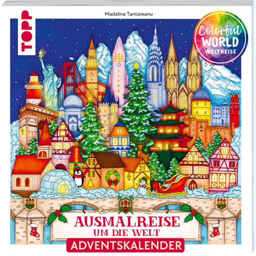 In 24 liebevoll gezeichneten Ausmalmotiven reist du mit diesem Adventskalender um die Welt. Mit dabei im leichten Handgepäck: nur dein Buntstiftkoffer! Die mit SPIEGEL-Bestseller ausgezeichnete Künstlerin Madalina Tantareanu hat für dich die weltweit schönsten Weihnachtsszenen eingefangen, die dich auf eine ganz besondere Reise schicken. Einige davon kannst du nach dem Ausmalen auch direkt als Postkarte ausschneiden und mit lieben Weihnachtsgrüßen verschicken.