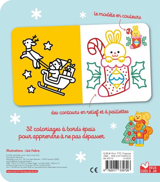 Des cahiers proposant 32 dessins à bords épais pour apprendre à colorier sans dépasser ; certains avec des bords en relief et pailletés !
