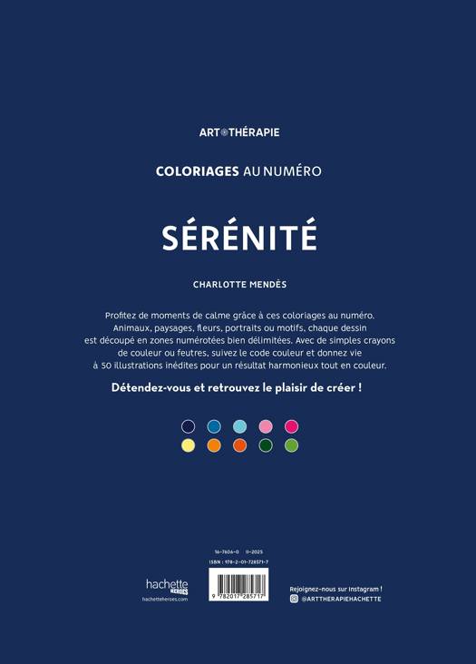 Animaux, paysages, fleurs, portraits ou motifs, chaque dessin est découpé en zones numérotées bien délimitées. Avec de simples crayons de couleur ou feutres, suivez le code couleur et donnez vie à 50 illustrations inédites pour un résultat harmonieux tout en couleur.