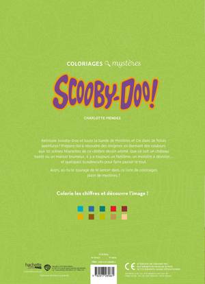 Retrouve Scooby-Doo et toute la bande de Mystères et Cie dans de folles aventures  ! Prépare-toi à résoudre des énigmes en donnant des couleurs aux scènes hilarantes de ce célèbre dessin animé. Que ce soit un château hanté ou un manoir brumeux, il y a toujours un fantôme, un monstre à dévoiler… et quelques Scoubiscuits pour faire passer le tout.