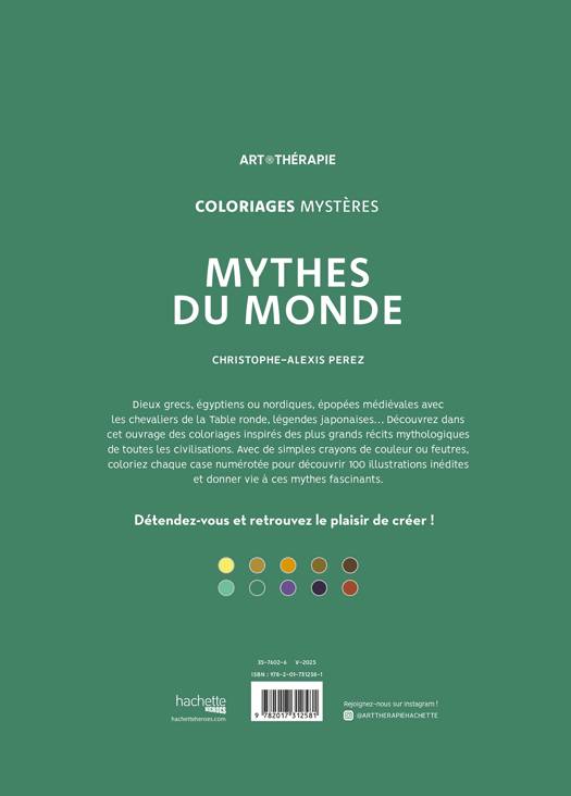 Dieux grecs, égyptiens ou nordiques, épopées médiévales avec les chevaliers de la Table ronde, légendes japonaises… Découvrez dans cet ouvrage des coloriages inspirés des plus grands récits mythologiques de toutes les civilisations. Avec de simples crayons de couleur ou feutres, coloriez chaque case numérotée pour découvrir 100 illustrations inédites et donner vie à ces mythes fascinants.